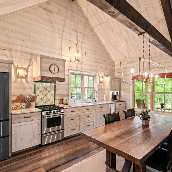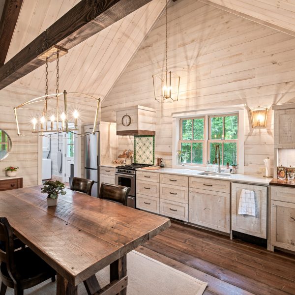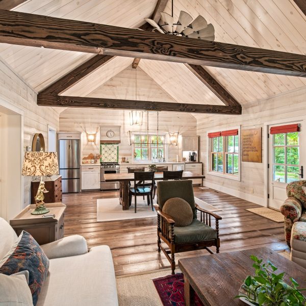 Cottage at the Barn is a small work of art. This design is perfect as a second home or get-away cottage. At 1,176 square feet with 2 bedrooms, 2 baths and laundry room, the plan features a mountain cottage exterior. The interior offers all of today’s conveniences in small house living. And oh, that front porch; just perfect for lazing away an afternoon!