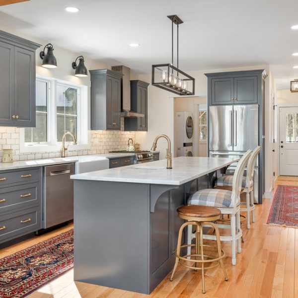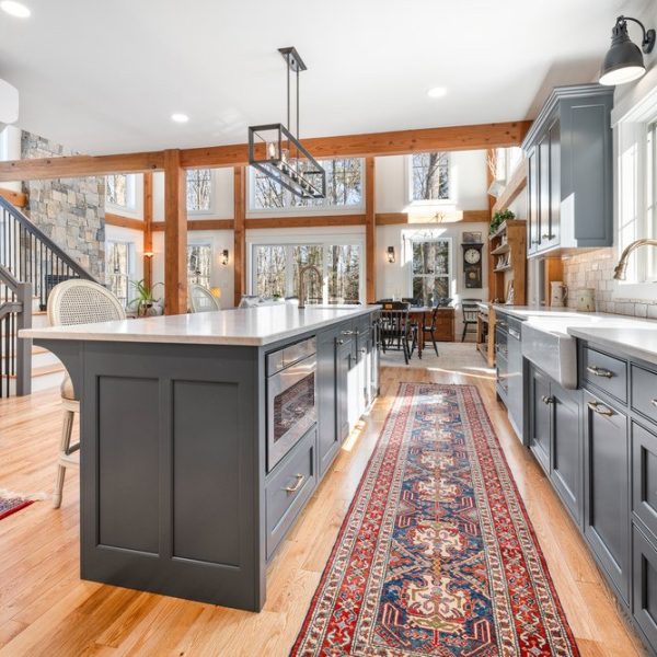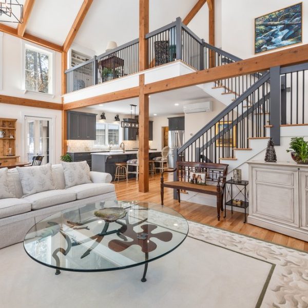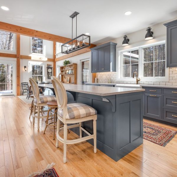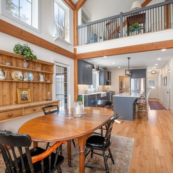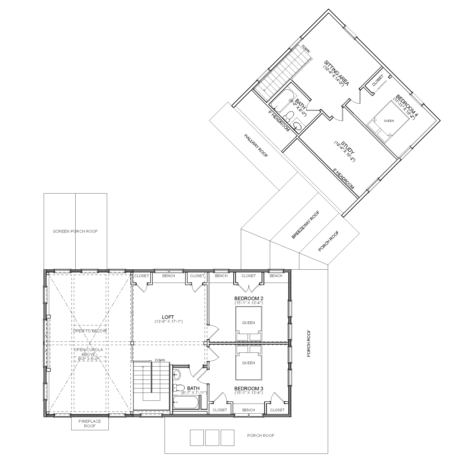 Northwood is a new design inspired by our Springfield Barn Home. Northwood closely adheres to the floor plan of Springfield with several modifications. The major changes are a single fireplace in the great room, a screen porch off the dining room, an enclosed breezeway connector, and a two-car garage with living quarters above. The house is 2,237 square feet of living space, 3 bedrooms, and 2.5 bathrooms. The space above the garage adds 583 square feet on the second level that includes a 4th bedroom and 3rd full bath.